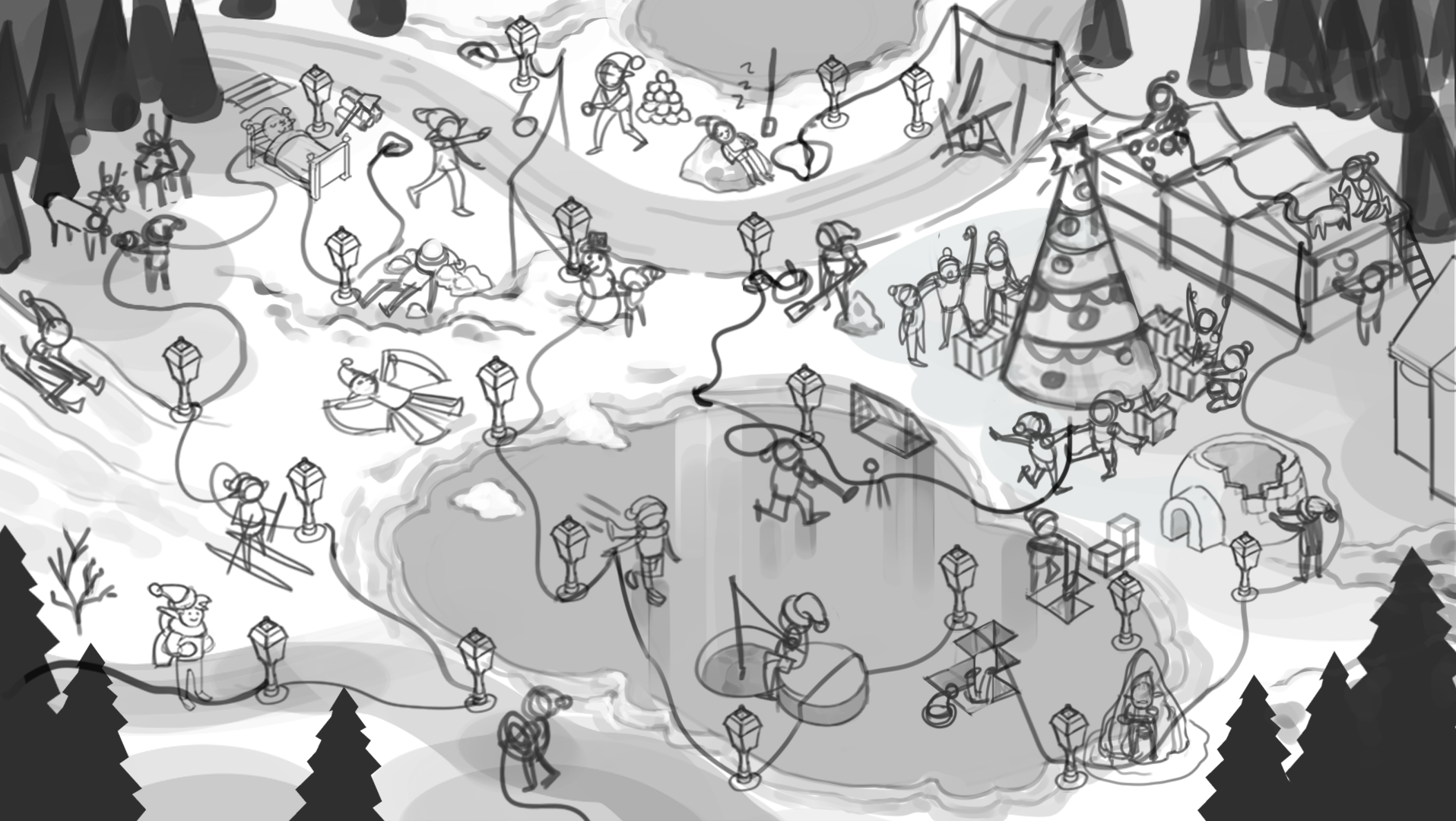 Illustrations I've done as part for my internship at Zense for last years Uniper Advent-Calendar. I was responsible for finding the layout of the calendar, designing all 24 elves, creating SVG assets in Illustrator as well as drawing additional illustrations for mini-games included in the calendar on special days. Special thanks to Sasha Müller for providing art direction and Aleksandar Dumic for drawing additional assets!